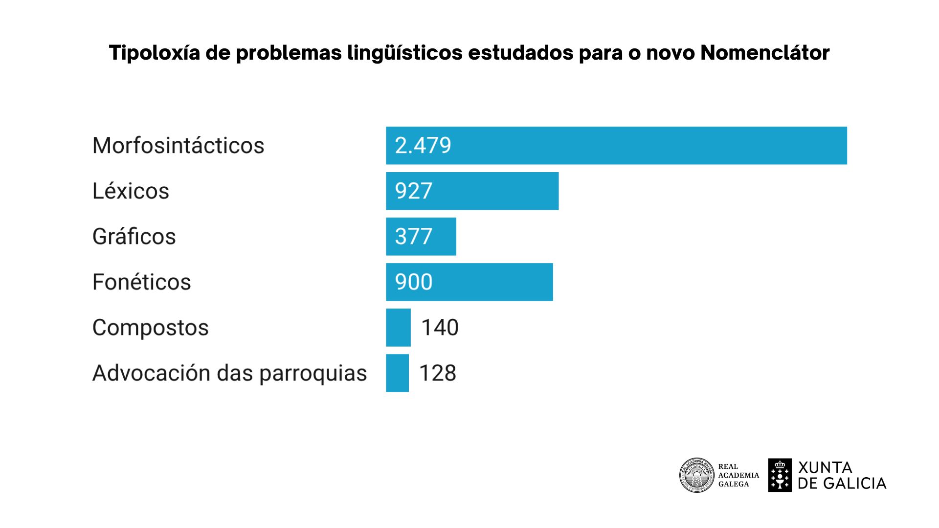 Además de las 14 denominaciones de ayuntamientos que cambian en el NG respecto a la versión de 2003, 182 de estos nuevos dictámenes corresponden a nombres y/o advocaciones de parroquias y 2.335 a nombres de lugar o entidades de población.