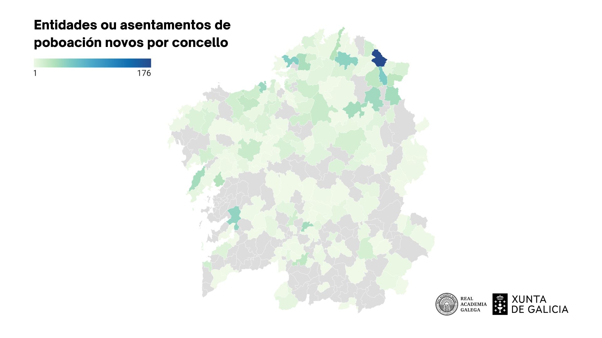 Se dieron de alta 1.665 nuevos lugares. El municipio que más topónimos añade al nomenclátor es Foz, con 175, seguido de Lourenzá (56), Narón (53), Ourol (49) y Pontevedra (47).