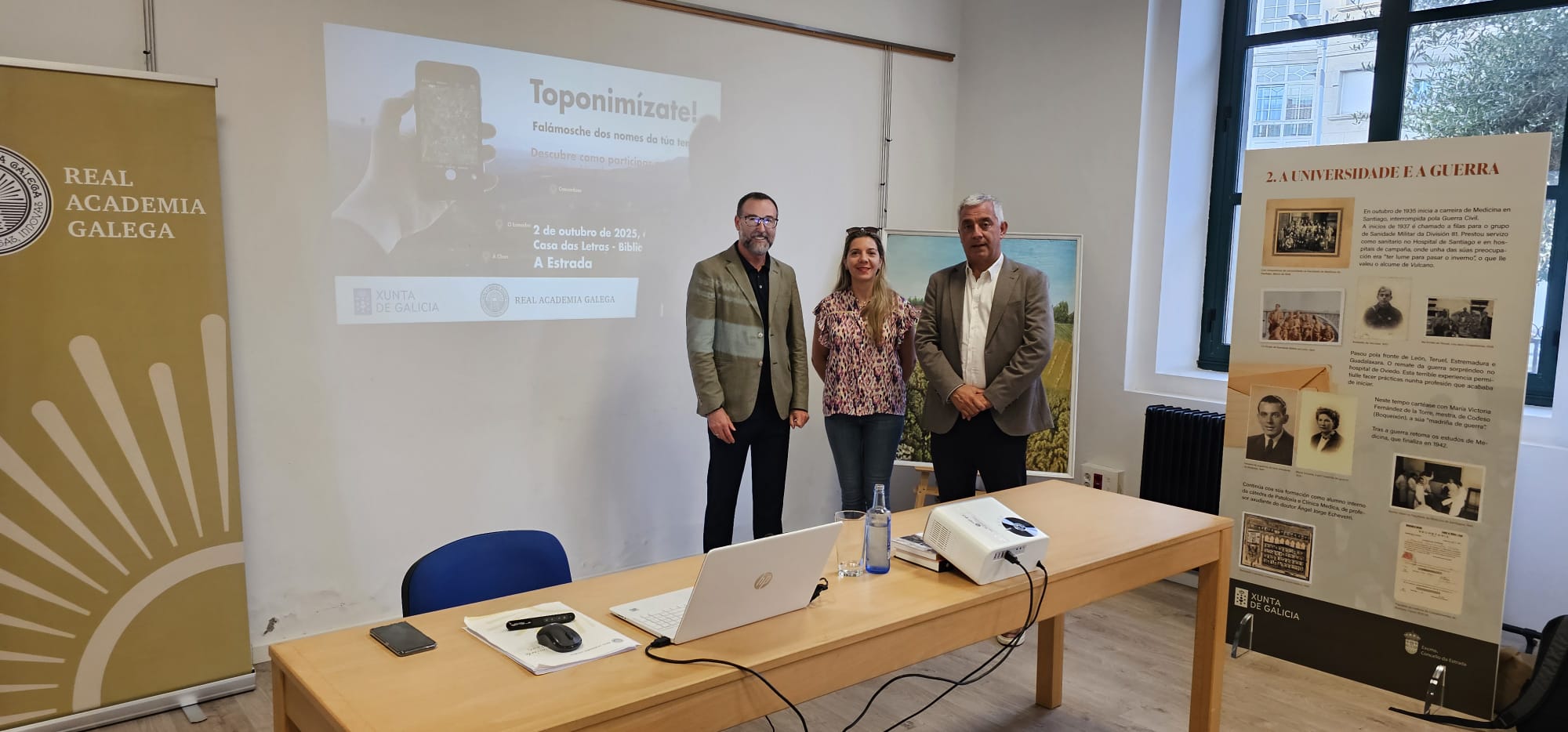 La Casa das Letras de A Estrada se engalanó para recibir la campaña Toponimízate. Falámosche dos nomes da túa terra. El pasado jueves 2 de octubre, decenas de personas acudieron a la llamada de la Real Academia Galega y de la Secretaría Xeral da Lingua, con la que están recorriendo el país en busca de personas e instituciones que se sumen a la recogida de nuestro patrimonio inmaterial toponímico antes de que desaparezca.
