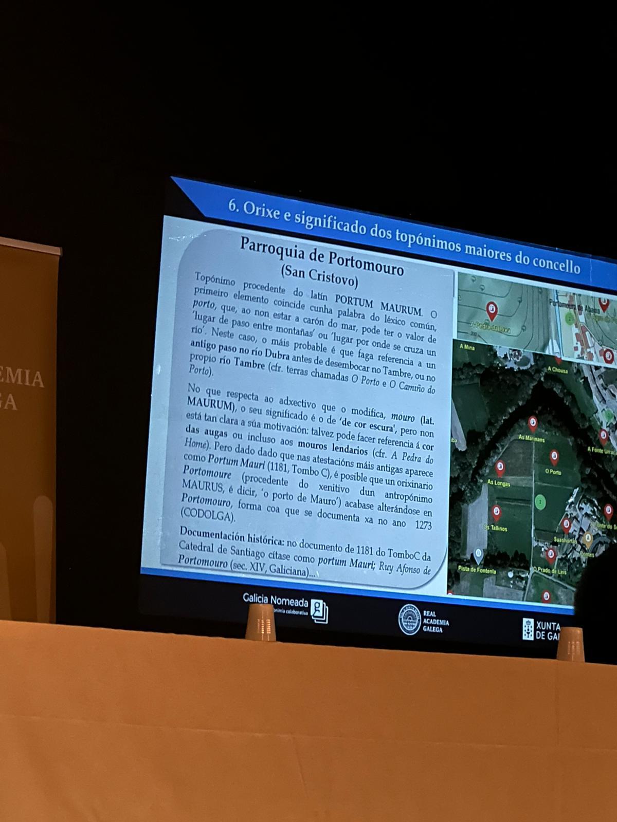 O último municipio galego en recibir neste ano a campaña foi Val do Dubra. O pasado xoves 6 de novembro ducias de dubreses déronse cita no seu Auditorio Municipal para asistir á charla impartida por Vicente Feijoo Ares, coordinador técnico de Galicia Nomeada e do Seminario de Onomástica da RAG. Na presentación deste evento interviron o propio alcalde, Diego Luís Díaz Méndez, que agradeceu á RAG e á Xunta de Galicia que elixisen o seu concello para esta campaña Toponimízate 2025 e manifestou o seu interese en seguir completando, agora a través da plataforma Galicia Nomeada, a recolleita de microtopónimos iniciada anos atrás polo desaparecido Proxecto Toponimia de Galicia (PTG); o concelleiro de Deportes, Iván Barcia Fernández, que foi o encargado de facer un breve percorrido pola traxectoria profesional do relator; María López Sández, académica de número de membro da Comisión Executiva da RAG, quen destacou o valor cultural e afectivo que teñen os topónimos, así como a necesidade de salvagardalos entre todos os galegos e galegas; e a técnica do Servizo de Normalización Lingüística, Andrea Muíño Quintáns, quen realizou as xestións oportunas para que a campaña chegase a este concello e para a súa organización.